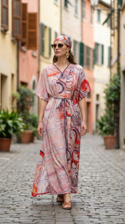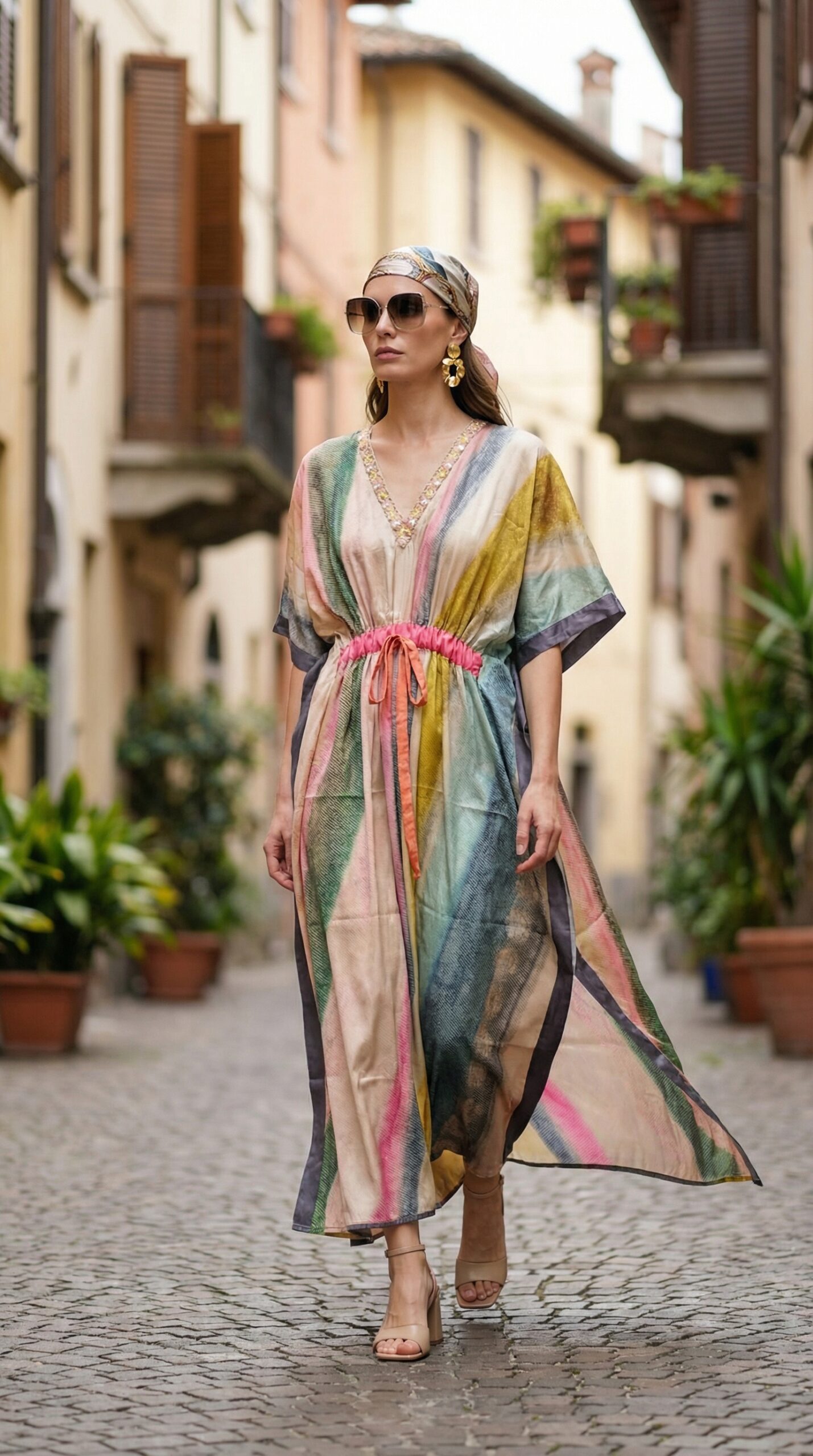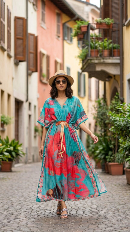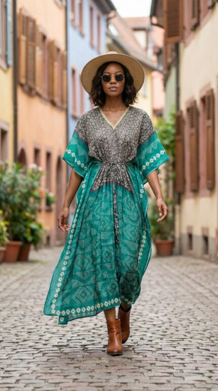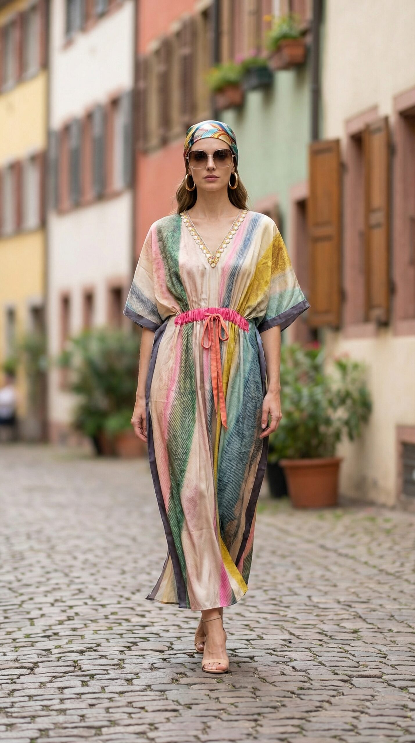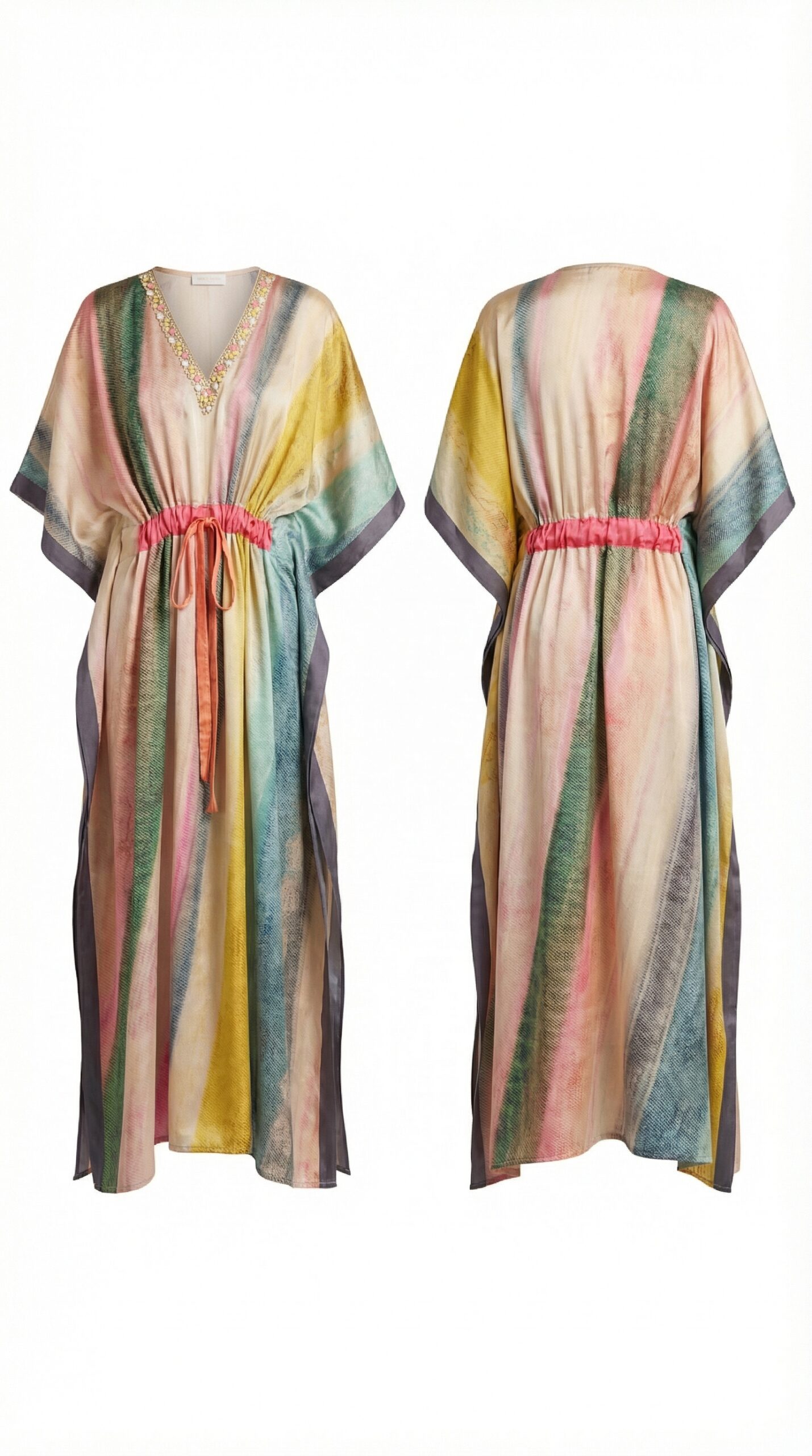 Perfect for resort wear, vacation styling, beach cover-ups, or relaxed everyday elegance, this kaftan blends comfort with statement design.