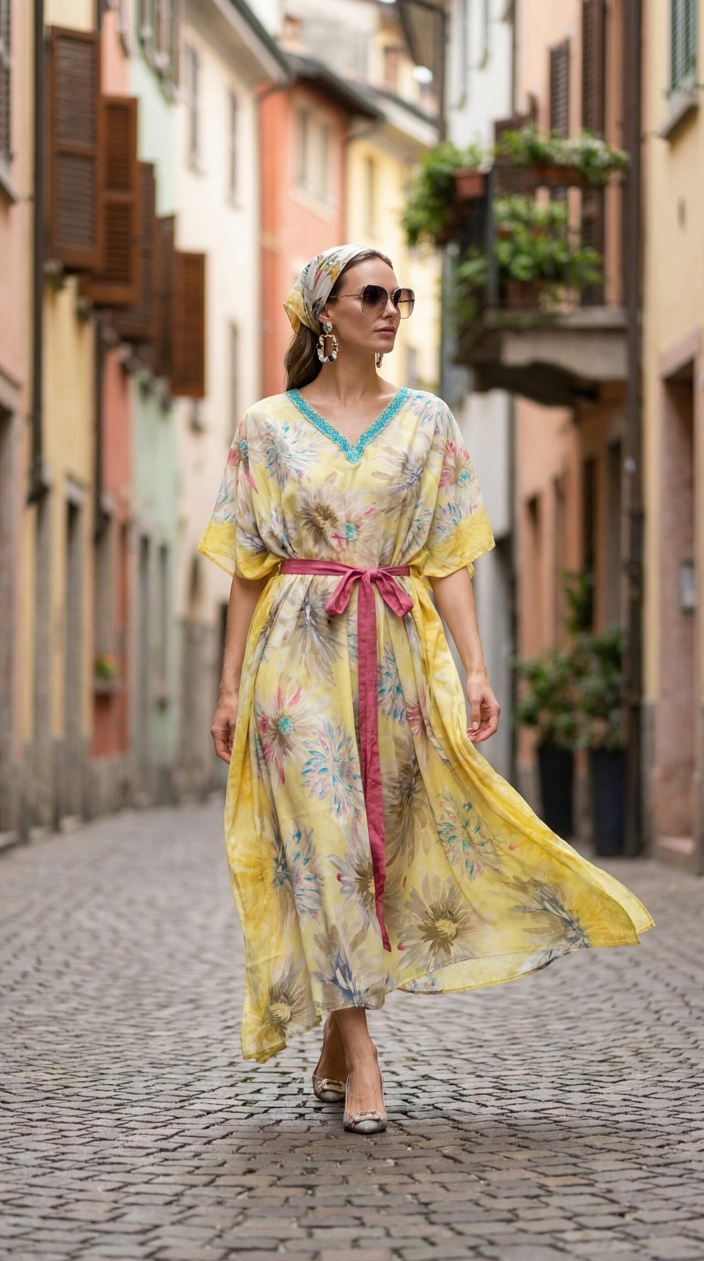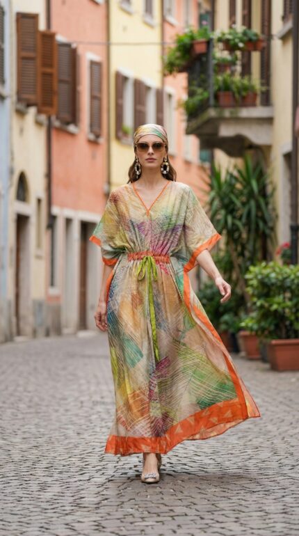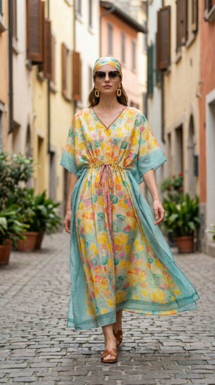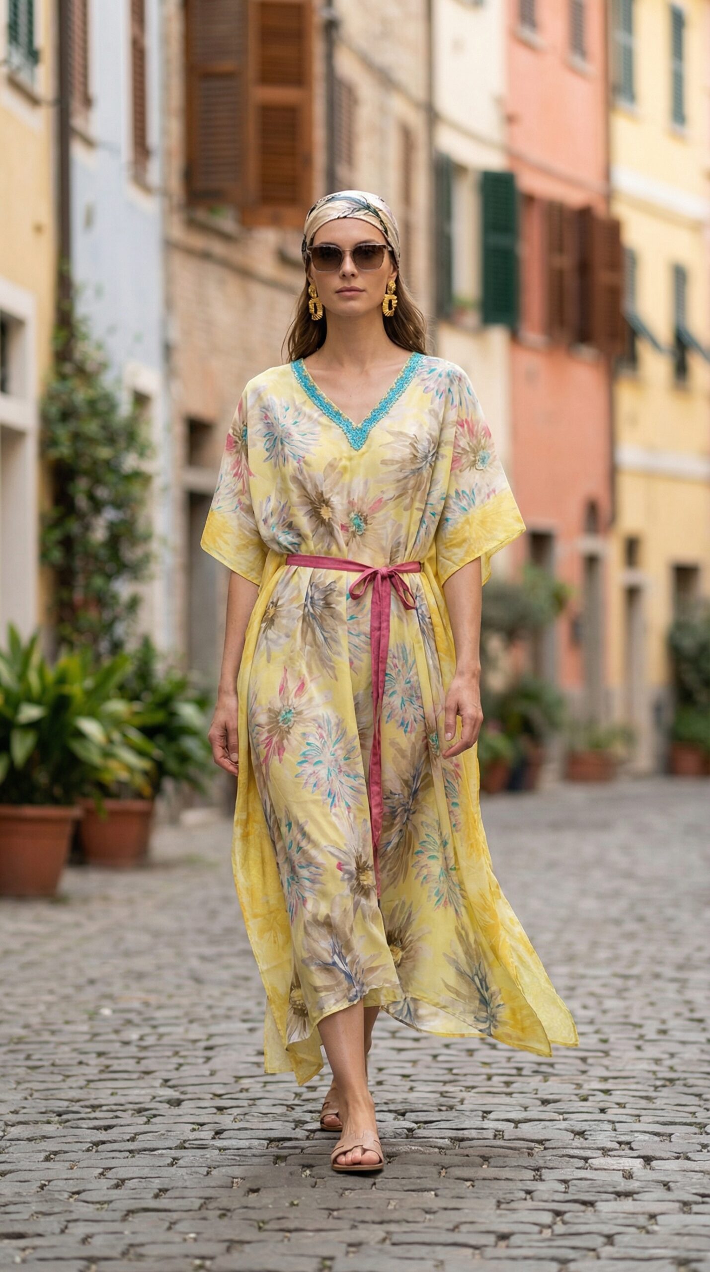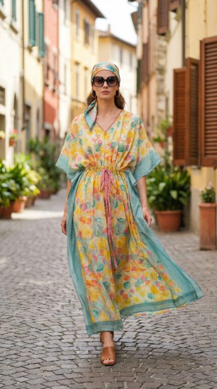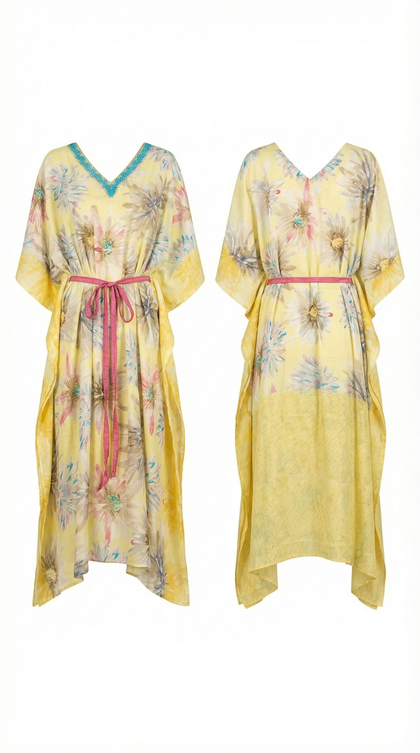 Perfect for resort wear, vacation styling, beach cover-ups, or relaxed everyday elegance, this kaftan blends comfort with statement design.