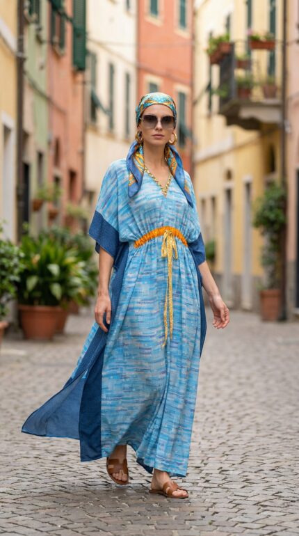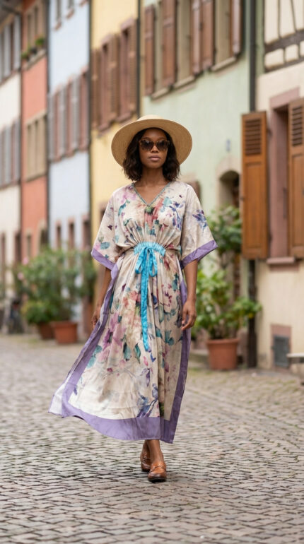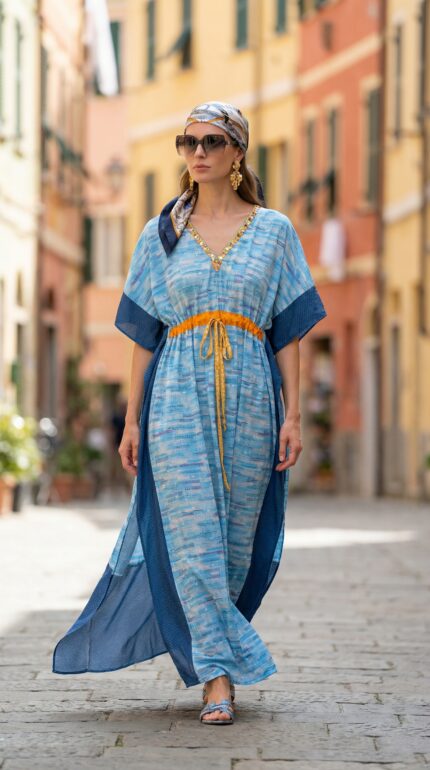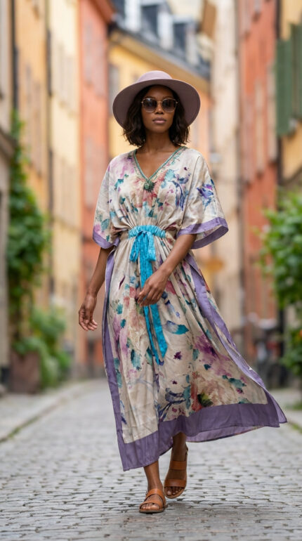 Perfect for resort wear, vacation styling, beach cover-ups, or relaxed everyday elegance, this kaftan blends comfort with statement design.