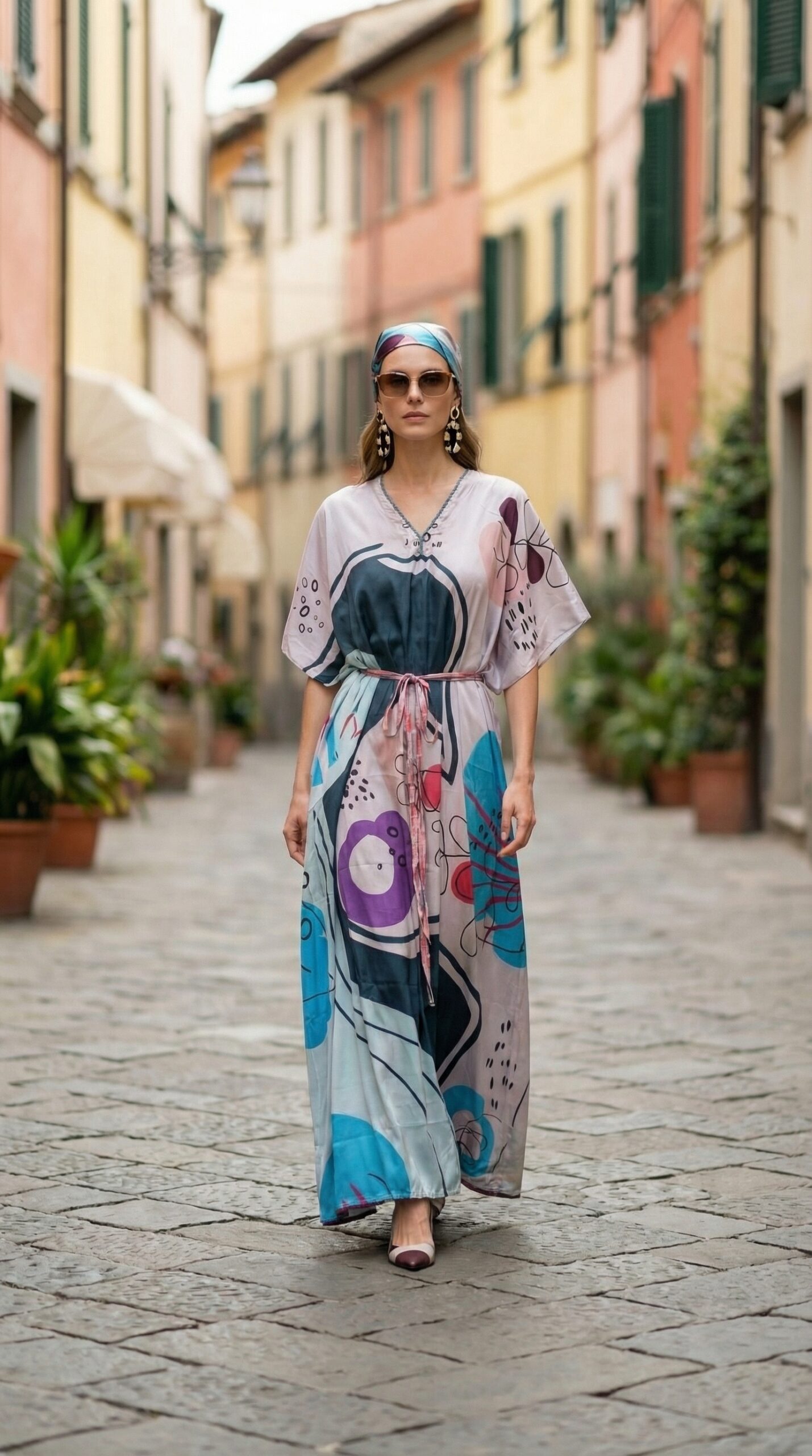 Perfect for resort wear, vacation styling, beach cover-ups, or relaxed everyday elegance, this kaftan blends comfort with statement design.